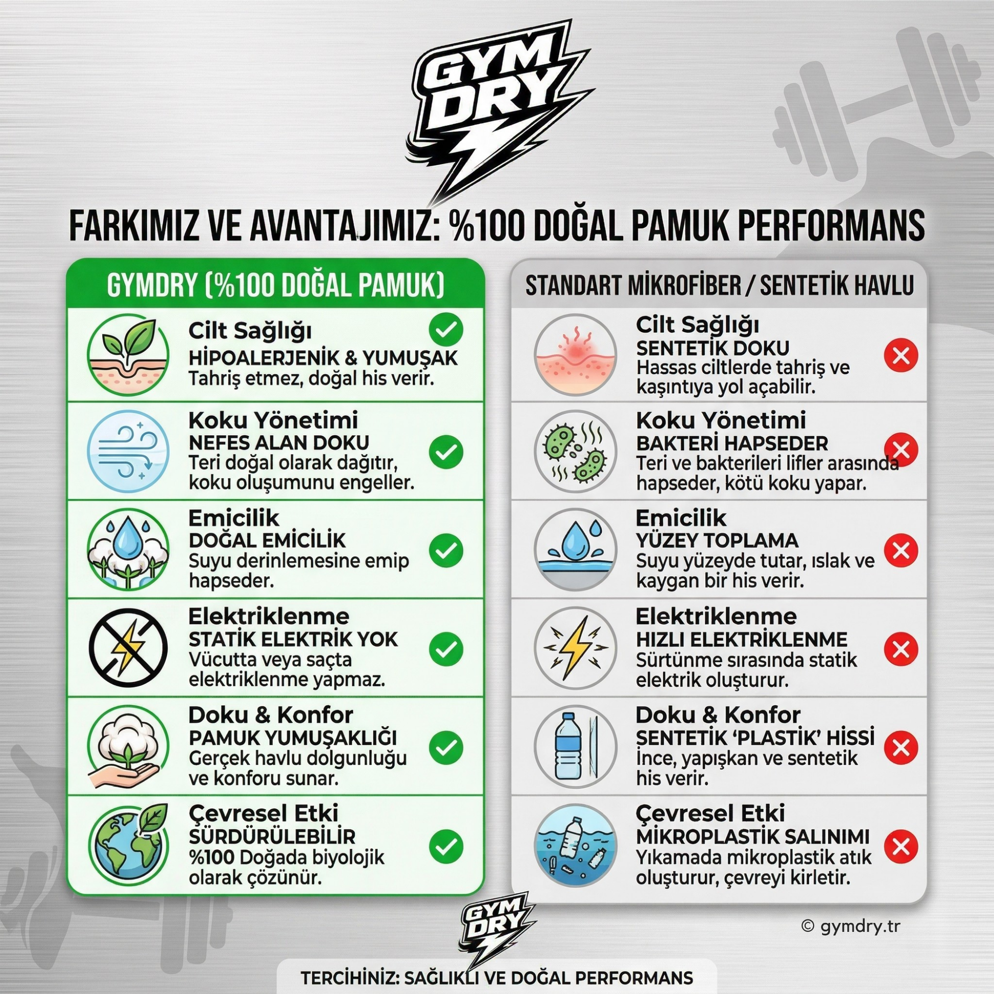 Antrenman yoğunlaştığında, dikkatinin dağılmasına izin verme. Gymdry havluları, teri saniyeler içinde hapseden ultra emici dokusuyla seni daima kuru ve serin tutar. En zorlu setlerde bile odağını sadece hedefine odakla; kuruluk işini bize bırak.